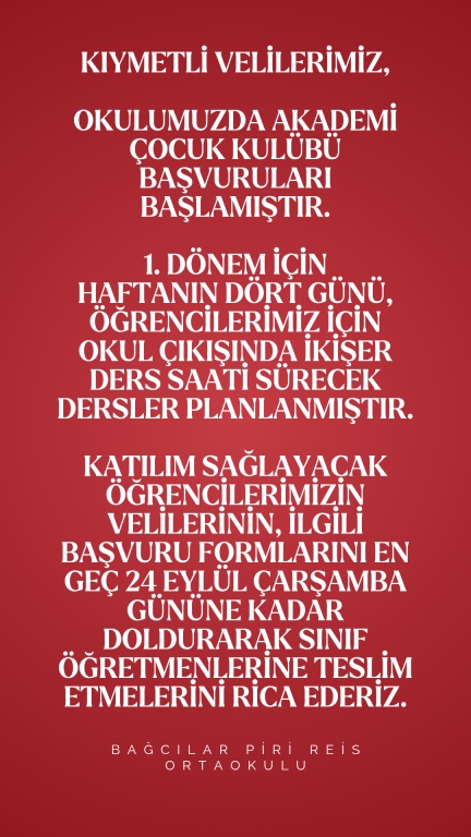 Çocuk kulübümüz ile ilgili bilgilendirme